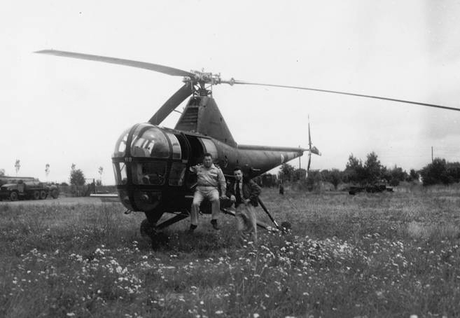 sanitaires au front avec les hélicoptères Hiller et vraisemblablement des