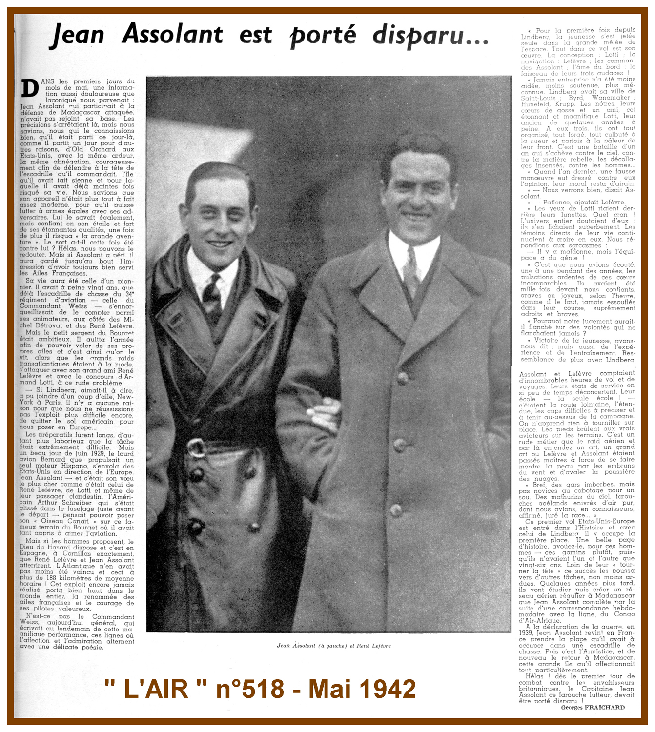 (1) souvent écrit par erreur Jean ASSOLANT – Voir