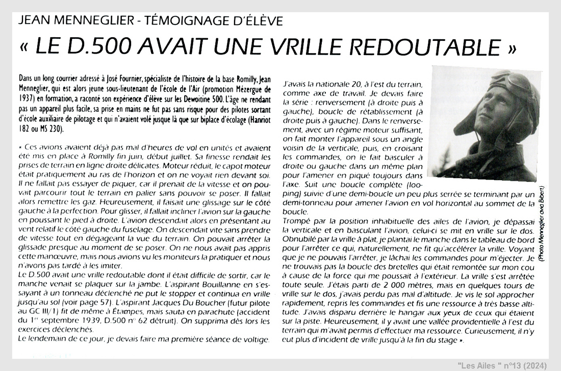 escadrilles utilisaient aussi pour l’entraînement quelques D.500 (ou 501) et