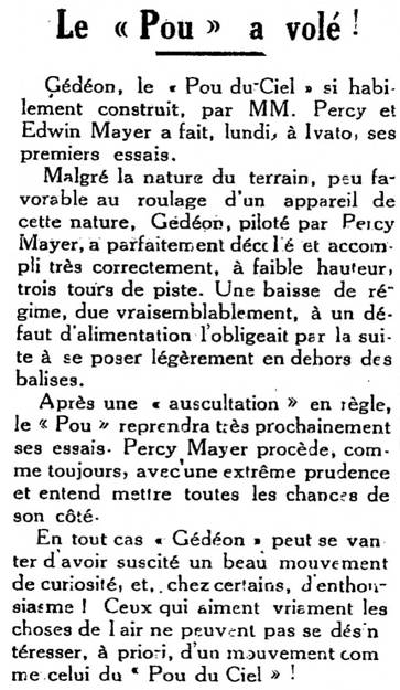 en France dans les « fêtes aériennes » en réalisant des acrobaties perchés sur l’aile de leur avion, en est