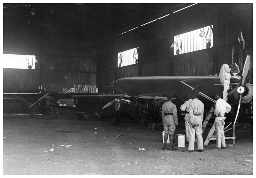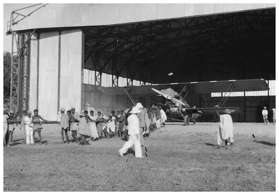 – 1 septembre 1934 - Tuléar – Sortie d’un Potez 25 du hangar par des indigènes