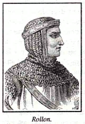 Note individuelle : Hrolf, plus tard nommé Rollon, banni norvégien, est né en 854. En 876, à la tête d'une bande dévastatrice de Normands, il arrive sur la Seine et établit son camp à Jumièges puis choisi Rouen comme capitale, lors de la capitulation négociée par l'évêque Guy. De là, il étend ses conquêtes sur la plus grande partie de la Neustrie. Sa police sévère fit régner la sécurité sur son territoire ce qui fit qu'après avoir terrorisé les habitants il fut aimé comme un protecteur.