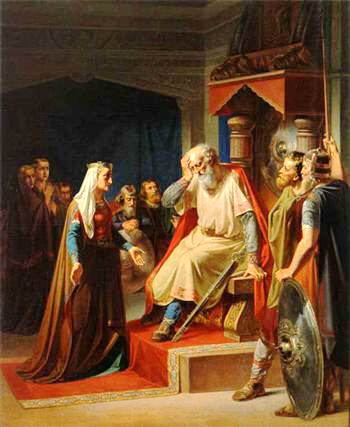 Gorm apprenat la mort de son fis Knut, toile de August Carl Vilhelm Thomsen (1813-1886)Gorm « le Vieux » (~875-958), roi du Danemark en 896. Fils de Horda Knut Sigurdsson.